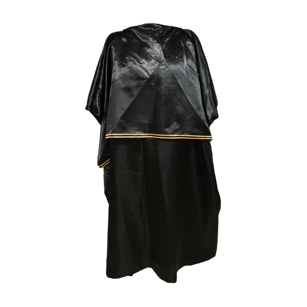 Black satin robe with two gold stripes